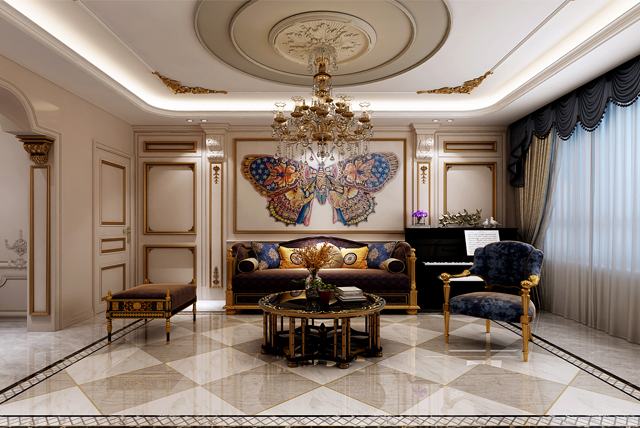 在布局上,配色以白、金的木色為主調(diào)。結(jié)構(gòu)粗厚的沙發(fā),圓形的鼓型茶幾,搭配搶眼的古典細(xì)節(jié)鑲飾,呈現(xiàn)皇室貴族般的品味。風(fēng)格則偏于莊重大方,整個(gè)建筑多采用對稱造型,恢宏的氣勢,豪華舒適的居住空間,屋頂多采用孟莎式,坡度有轉(zhuǎn)折,上部平緩,下部陡直,呈現(xiàn)出浪漫典雅風(fēng)格。,點(diǎn)綴在自然中,崇尚沖突之美。